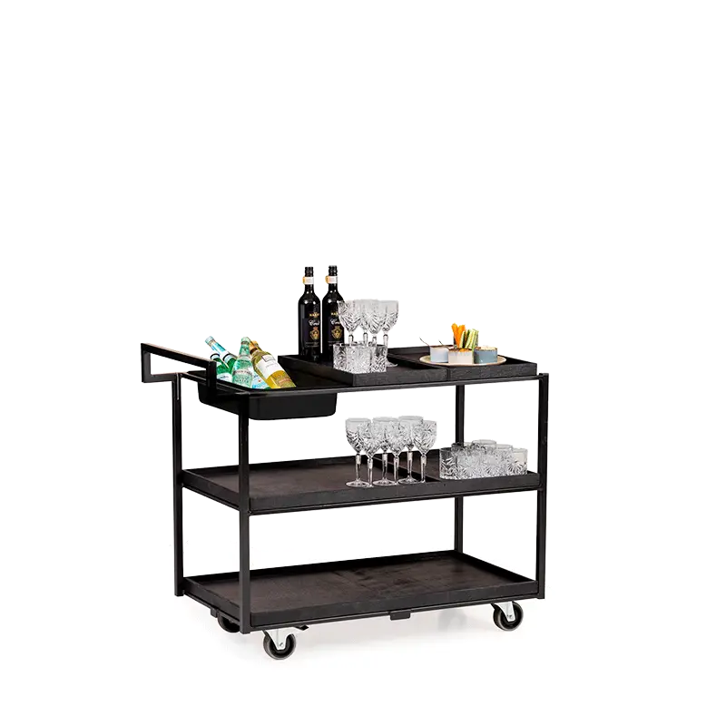 De borrelkar is een serveertrolley die bestaat uit een drievaks verdeling. Te gebruiken met inzetbakken voor crushed ice. Inzetbakken zijn niet inbegrepen.