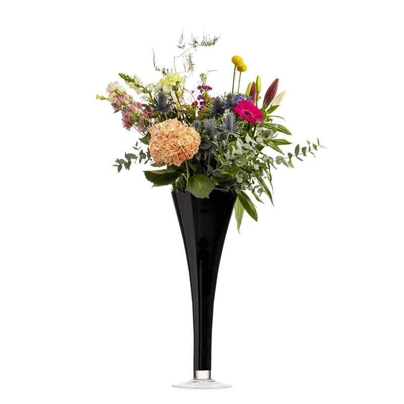 De bloemen in onze vazen/vaasjes worden altijd passend, op maat en seizoensgebonden samengesteld. Daarom kan het bloemwerk afwijken van de afbeelding. Heb je een bepaalde wens? Geef dit aan bij de bestelling in het opmerkingenveld.